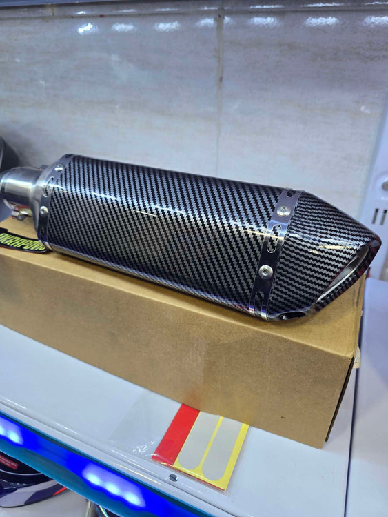 اگزوز قهرمانی اکروویچ طرح کربن کوتاه سایلنسر دار با صدای بسیار بم وزیبا مناسب انواع موتور ها