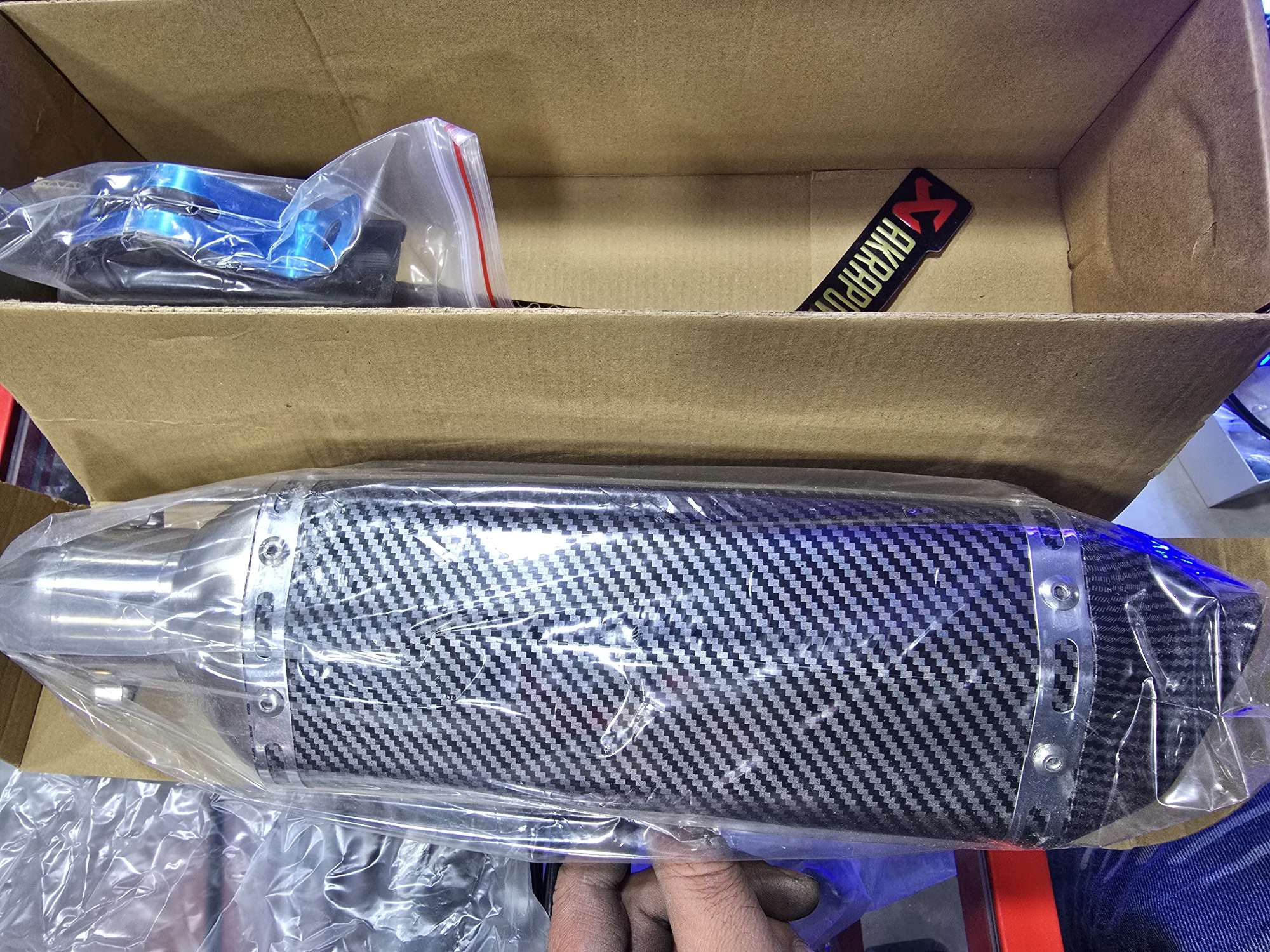 اگزوز قهرمانی اکروویچ طرح کربن کوتاه سایلنسر دار با صدای بسیار بم وزیبا مناسب انواع موتور ها