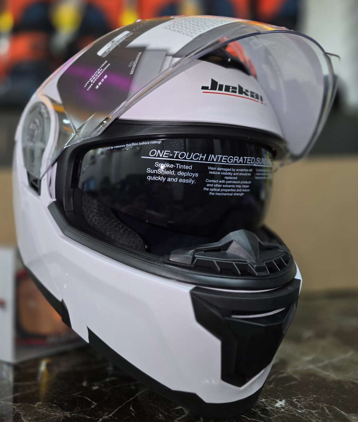 کلاه کاسکت فک متحرک با برندشناخته شده jiekai باکیفیت ومقاوت بسیار بالا با طراحی آیرودینامیک